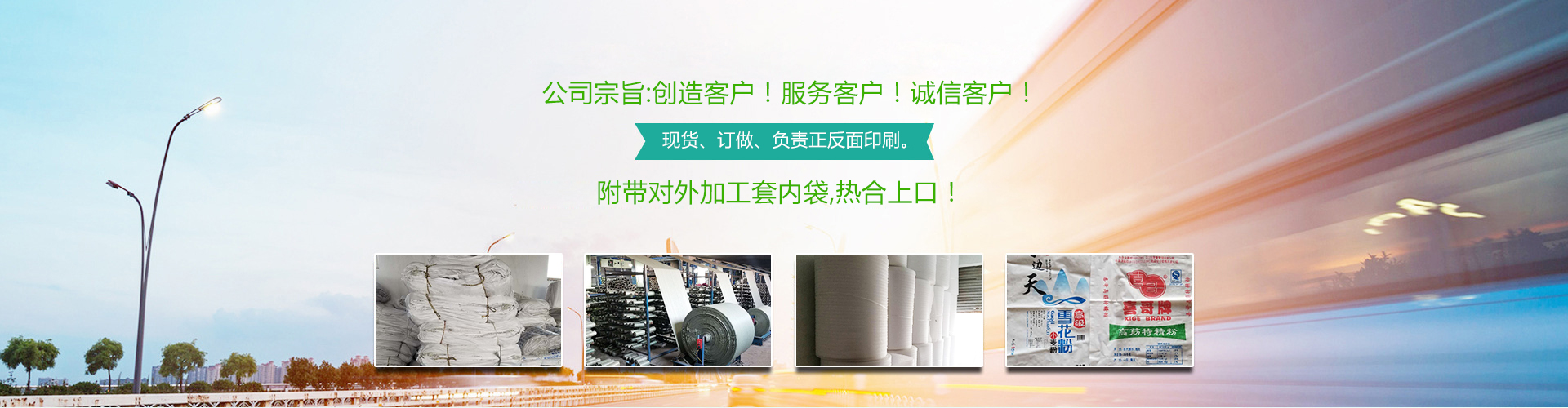 本公司常年生產: 編織袋、彩膜、食品袋、集裝袋、飼料袋、化肥袋、水泥袋、化工袋、普危包裝袋、坯布專用內袋、包皮、印染廠整裝專用包裝、有現貨、也訂做、負責正反面印刷。附帶對外加工套內袋,熱合上口!聯系人:王經理。 公司宗旨:創(chuàng)造客戶!服務客戶!誠信客戶! 13256289338.17686389888